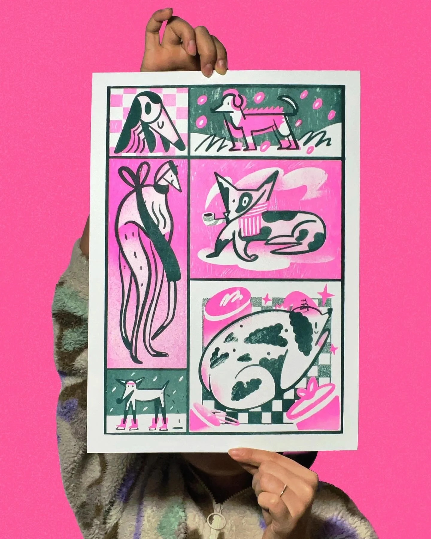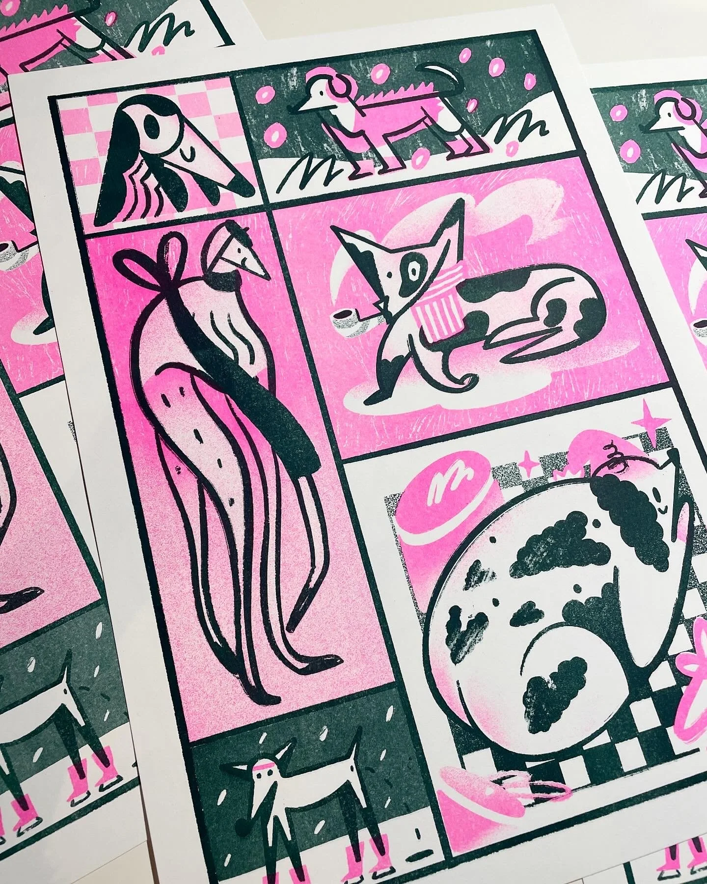 Christmas Hunde: "Christmas Hunde" is a funny A3 Riso poster, made with care and eco-friendly printing colours by Drucken3000.